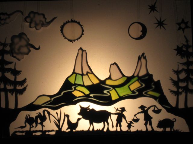 Schattentheaterszene nach einem Chinesischen Schöpfungsmythos Text und Inszenierung: Theo – Theater Oberzeiring Bühnenbilder und Figuren: Ingeborg Kruspel